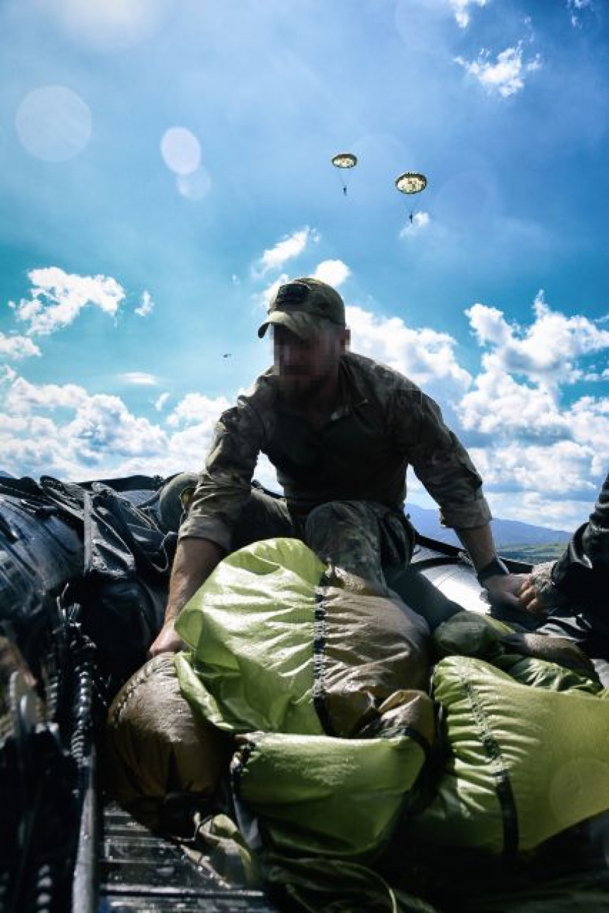 Spoločná výcviková aktivita pozostávala z niekoľkých častí. Ako prvé boli realizované cvičné zoskoky na vodnú hladinu z vrtuľníka z výšky 300 metrov. Činnosť výsadkára je obmedzená vykonaním povinných úkonov určených pre zoskok na vodnú hladinu. Po pristátí vojakov i s padákmi kolegovia vytiahli do člna a transportovali na breh.