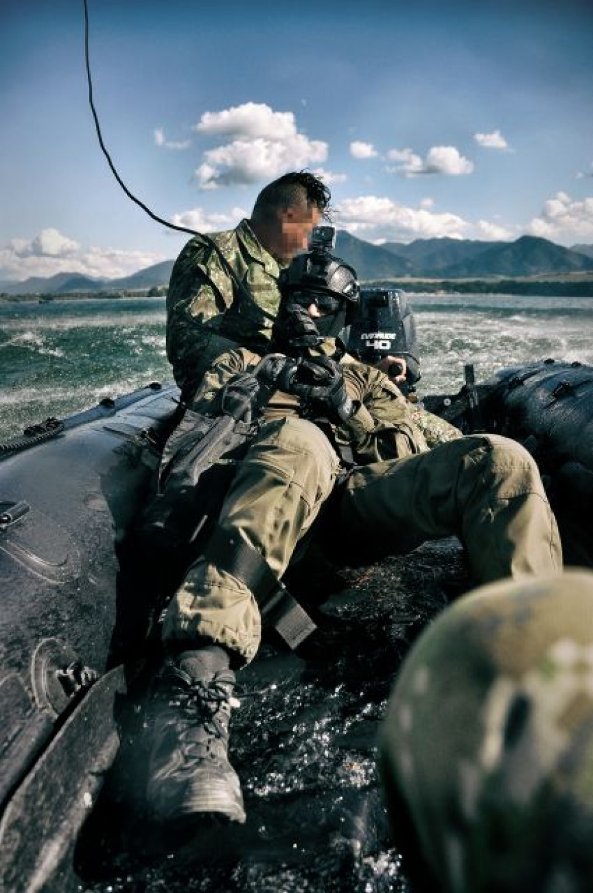 Poslednou z aktivít bolo rezanie lana pri zlaňovaní z vrtuľníka Mi-171 na vodnú hladinu, pričom pri každom „vysadení“ do vody si ostatní členovia na člnoch precvičovali rýchle manévrovanie a presnú jazdu k svojim kolegom vo vode. Počas čakania na vrtuľník s extrakčným lanom si členovia „obojživelnej skupiny“ precvičili aj taktický výsadok z idúceho člna.