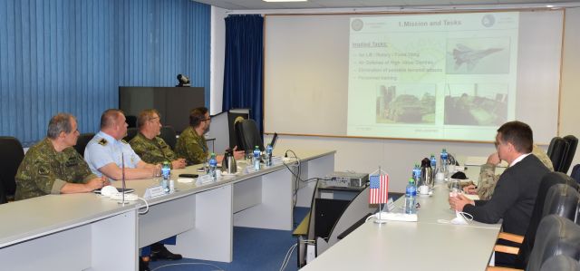 Po privítaní delegácie veliteľom vzdušných síl brigádnym generálom Róbertom Tóthom nasledovala prezentácia o hlavných úlohách, poslaní a smerovaní slovenských vzdušných síl.