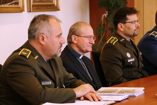 Predmetom rokovania s biskupom ordinárom Mons. Františkom Rábekom a generálnym duchovným ústredia plukovníkom Marianom Bodollóm bola výmena informácií a skúseností z pôsobenia vojenských duchovných v útvaroch a zariadeniach ozbrojených síl ako aj potreba aktualizácie služobných predpisov riadiacich prácu v tejto oblasti.